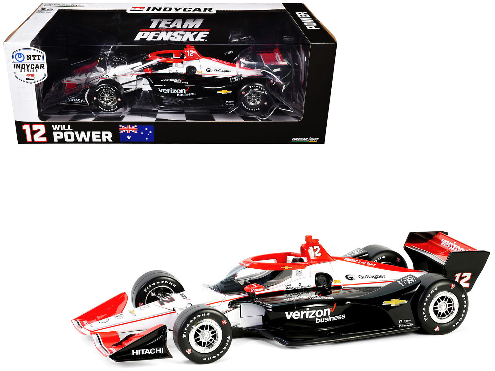 - Brand new 1/18 scale diecast car model of Dallara IndyCar #12 Will Power “Verizon” Team Penske (Road Course Configuration) “NTT IndyCar Series” (2024) die cast model car by Greenlight.
